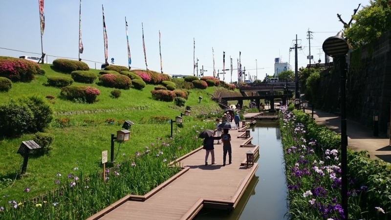 菊池川を渡るJR鉄橋下流の鶴の河原の土手には、春、野アザミが咲き乱れています。 春の風に揺れる野アザミを愛でながら、川沿いをのんびり散歩するのは気持ちいいです。 他にも、つくしやストロベリーキャンドル等、春の河川敷はにぎやかです。 | 鶴の河原河川緑地(外部リンク) |