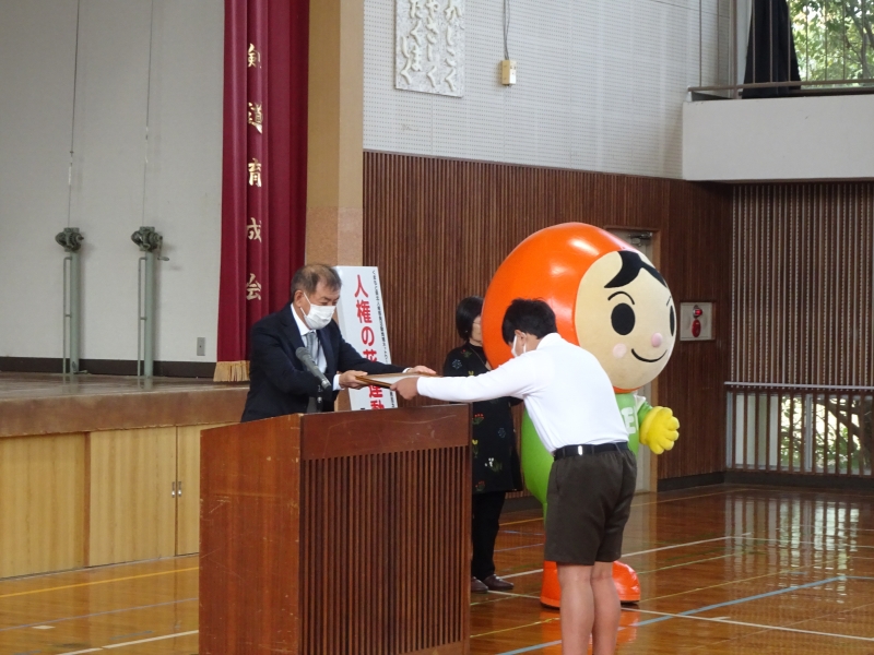 式典では「人権の花」運動を通し、学校をあげて人権思想の普及高揚に努めた功績をたたえ、市人権啓発課長から感謝状が贈呈されました。