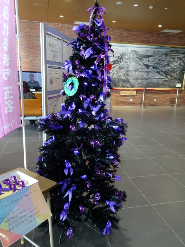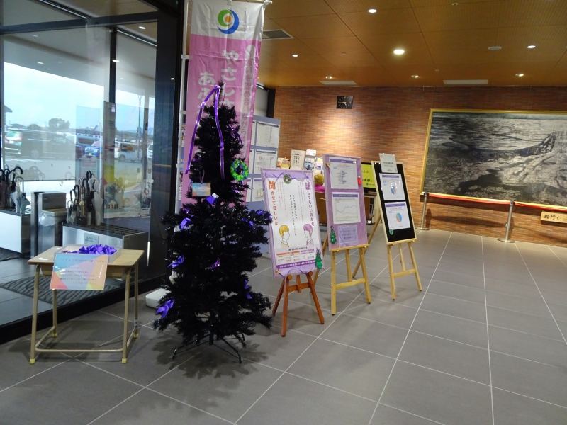 「女性に対する暴力をなくす運動期間」の啓発と意識向上のため、玉名市役所1階ロビーにツリーを設置しています。