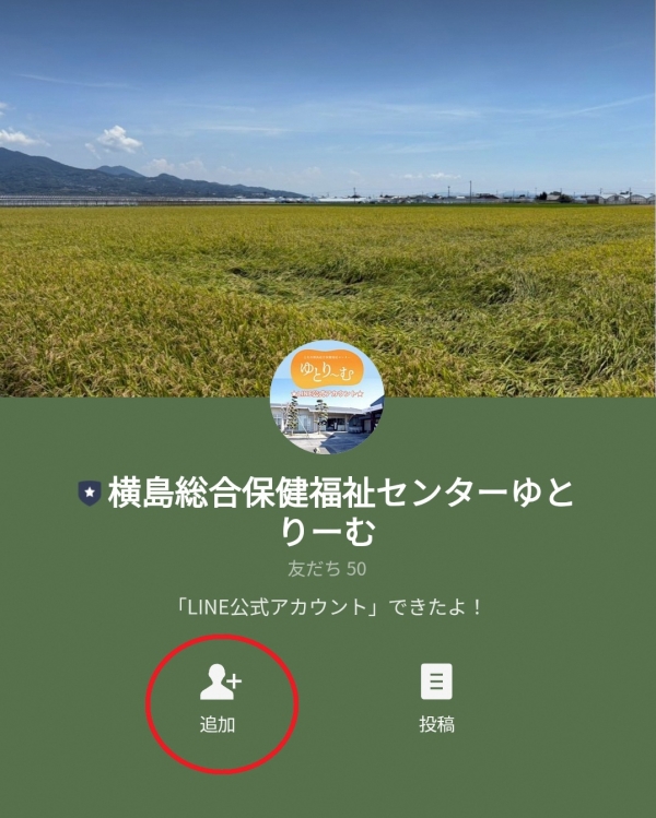 横島総合保健福祉センター「ゆとりーむ」に、LINE公式アカウントができました!