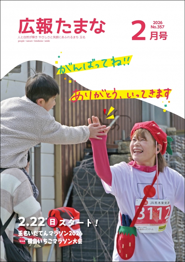 - 19ページ:募集:令和8年度さわやか大学校入学生募集/令和8年度玉名市ロビーコンサート出演者募集(前期)/玉名市営住宅入居者募集/第77回玉名ハーフマラソン大会/防災行政無線の戸別受信機を貸与します/玉名市奨学生・玉名市育英奨学生募集/女性人材リスト登録者を募集します/くまもと県北病院職員募集