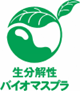 「バイオマスプラ」は、再生可能なバイオマス資源を原料に、科学的または生物学的に合成することで得られるプラスチックを使用し、定められた基準をクリアした製品の目印です。(日本バイオプラスチック協会の認証マーク)