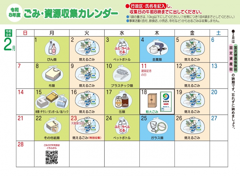 - 2026年2月27日 令和8年度 A地区 ごみ・資源収集カレンダ...