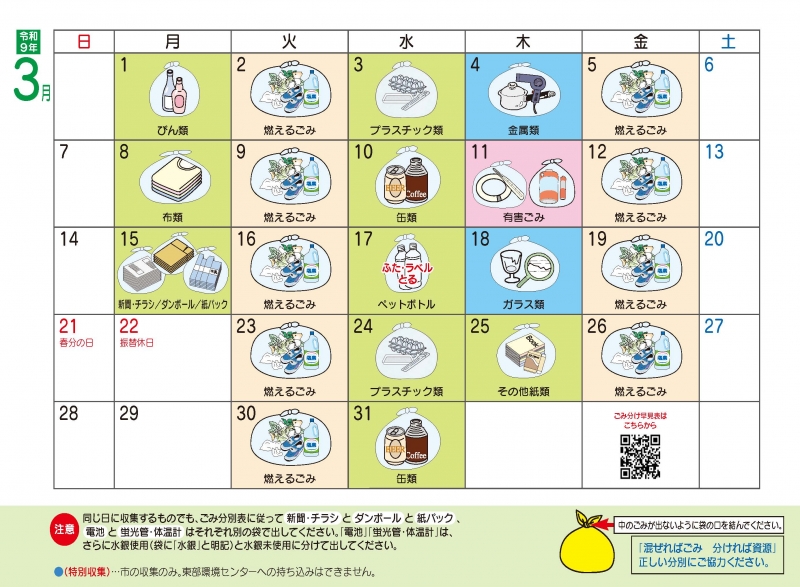 【特別収集】…市の収集のみ。東部環境センターへの持ち込みはできません。