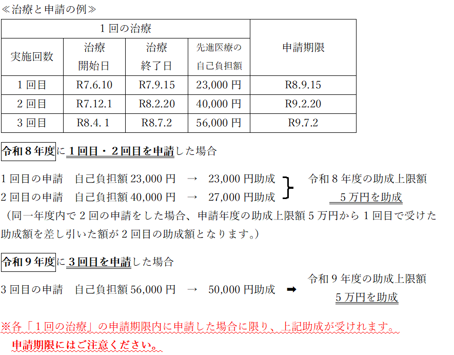 ★複数回の申請は可能ですが、申請した年度で合算して上限5万円の助成となります。また、各「1回の治療」における申請期限にはご注意ください。