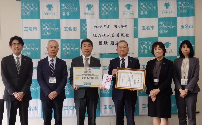 令和7年11月25日、明治安田生命保険相互会社熊本支社から本市に寄附があり、贈呈式を行いました。