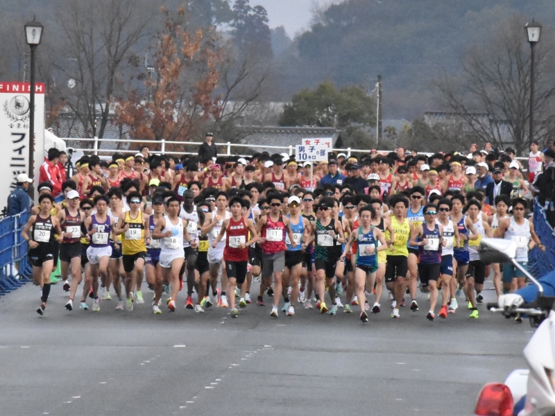 本レースは高低差のほとんどない、平坦な高速コースで、「ハーフマラソン」「男子10キロ」「女子10キロ」の3部門を開催しており、毎年600人前後の選手が早春の玉名路を駆けます。
