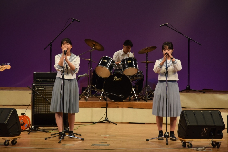 まず最初は玉名高校ギター部をお届けしました。「楓」「小さな恋の歌」「打上花火」「ハッピーエンド」「運命」と、アコースティックギター、エレキギター、ベース、ピアノ、ドラムと軽音楽の良さを十分披露しました。女子のツインボーカルものびのびと歌い、若さあふれるステージとなりました。