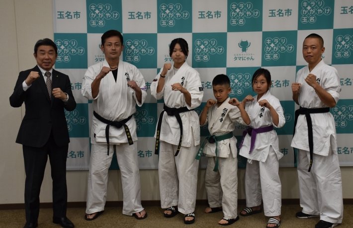 市長は「全国大会出場おめでとうございます。日々の稽古はもちろん、普段の生活も大事に過ごしながら、大会まで代表、師範の指導を信じて練習を続けてください。大会では悔いの残らないようベストコンディションで挑み、よい結果が残せるよう活躍を期待しています」と激励しました。