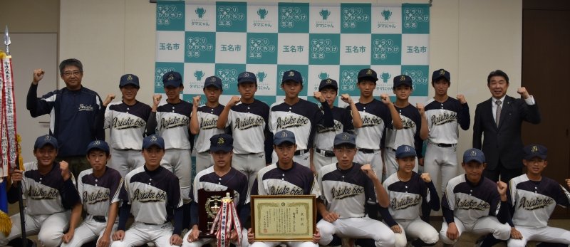 市長は「九州大会出場おめでとうございます。みなさんが大きな大会に出場することは保護者はもちろん、広報などで知った地域の人たちもやはり嬉しく思いますし、玉名市の誇りと感じています。九州大会では、ぜひ楽しんで、思いっきり戦ってください。悔いの残らないようベストコンディションで挑み、よい結果が残せるよう活躍を期待しています」と激励しました。