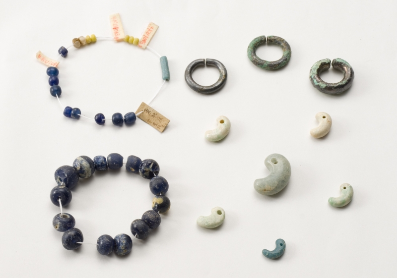 ガラス玉やヒスイ製まが玉、耳環などの装身具