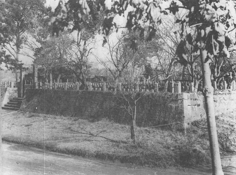 高瀬官軍墓地は、高瀬の街並みの北側に位置します。付近は願行寺や、現在は廃寺となった清源寺があり、寺院の一角に整備されました。古写真などから、周囲に石垣と土塁を巡らして方形に区画し、墓碑が並べてあった様子がわかります。