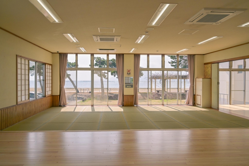 飲食・物販ブース、カヌー艇庫、会議や運動スペース機能等を整備します。また、砂浜側との一体感を出すために砂浜側の壁を取り除いたり、砂浜側にテラスの設置を予定しています。