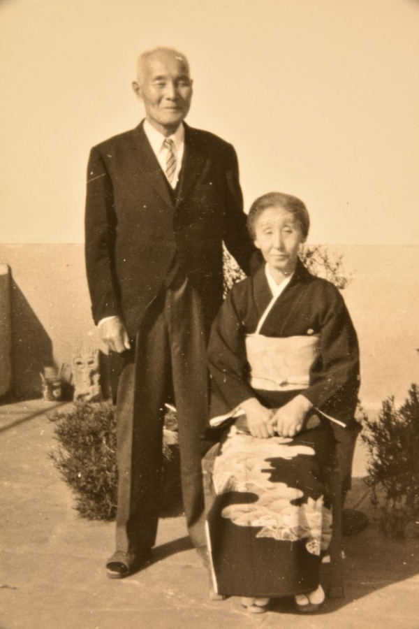 金栗四三と妻スヤ(昭和40年<1965>秋の園遊会にて)